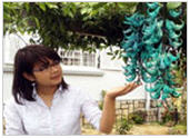 “Vì chồng tôi hợp với màu trắng nên tôi chỉ chọn sắc hoa này để tăng vượng khí nơi sinh sống và cầu mong mọi điều may mắn cho anh ấy” - TS Mai nói. Tuy nhiên có một loài hoa màu xanh đã lạc vào biệt thự hoa trắng ấy. Đó là hoa móng cọp xanh với tên khoa học Strongylondon macrobotrys.
