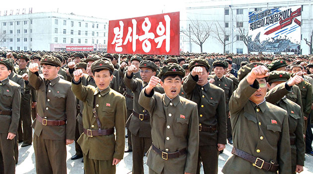 Triều Tiên biểu t́nh chống Hàn Quốc và Mỹ tại Nampo, hôm 3/4/2013.