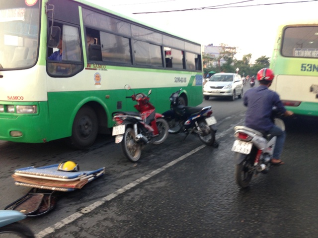 Sáng sớm 6/4 trên đường Kha Vạn Cân (đoạn qua phường Linh Tây, quận Thủ Đức-TPHCM), 2 xe máy lần lượt mang BKS 59X2-105.55 và 53V4-3016 do 2 nam giới (tuổi từ 30 đến 35) điều khiển chẳng may va chạm nhau tại giao lộ Hồ Tùng Mậu – Kha Vạn Cân.