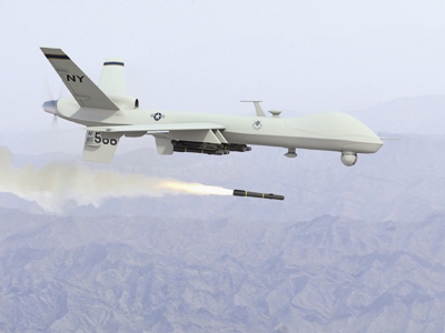 Máy bay không người lái Predator của Mỹ phóng tên lửa. Ảnh: Getty Images.