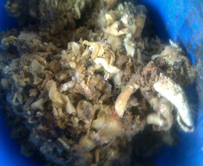 Tóp mỡ tích trong những chiếc thùng, được cắt ra từ thùng đựng hóa chất, bán với giá từ 1.000 - 2.000đồng/kg để làm thức ăn cho cá. Bì lợn thì được ngâm qua dung dịch để làm trắng, sau đó sấy khô thành bóng bì cung cấp cho các hàng lẩu, các cửa hàng bán đồ khô.