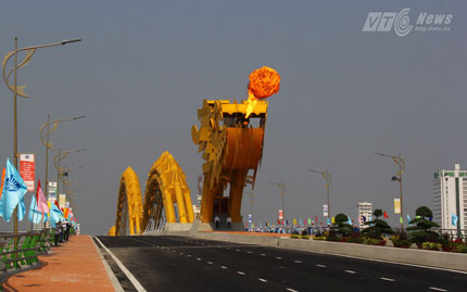 | Cầu rồng phun lửa trong ngày khánh thành |