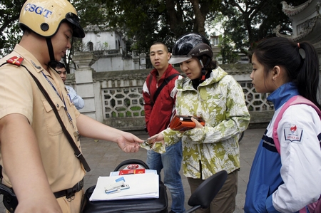 Trước đó, ngày 8/4, lực lượng cảnh sát giao thông Hà Nội đă chính thức ra quân, xử phạt các trường hợp vi phạm quy định trên địa bàn 3 quận Ba Đ́nh, Cầu Giấy và Đống Đa.