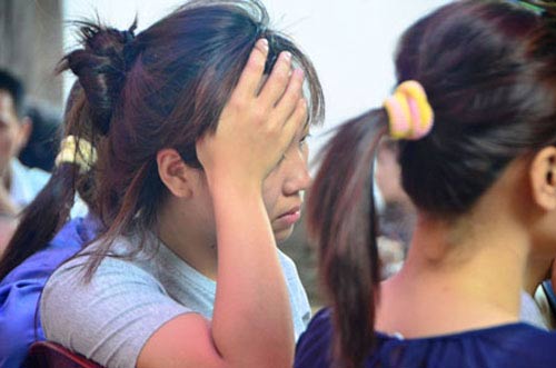 Chị gái em Lê Thị Huyền Trang vật vã đau đớn trước cái chết thảm thương của em gái.