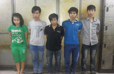 Cơ quan điều tra công an huyện B́nh Chánh (TP.HCM) vừa bắt khẩn cấp Nguyễn Thành Hoàng (18 tuổi, ngụ Long An), Nguyễn Tấn Tài (18 tuổi, tạm trú Q.B́nh Tân), Huỳnh Nhật Viên (18 tuổi, sống lang thang), Nguyễn Văn Tú (24 tuổi, sống lang thang), Dương Thị Diễm Châu (17 tuổi, ngụ An Giang) để điều tra hành vi “cướp tài sản”.
