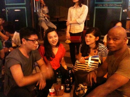 Trong quán trà chanh ở số 18 Tạ Hiện (Hà Nội), Robetto - người Anh đang ngồi "chém gió" với những người bạn Việt Nam. Anh sang Việt Nam được ba năm, đang học ở khoa Việt Nam học, trường ĐHKHXHNV (ĐHQG), những người bạn đi cùng với Robetto là những người anh quen ở "phố trà chanh" này. Tại đây, những câu chuyện rôm rả hơn khi cả nhóm bạn rủ nhau cuối tuần này về khu du lịch Vân Long (Ninh Bình) để chụp ảnh và tham quan đầm ngập nước. Robetto cho biết, nhiều người nước ngoài đến đây không chỉ tìm bạn cùng sở thích để nói chuyện mà họ cũng đến đây để tìm cơ hội, làm quen với các cô gái Việt Nam.
