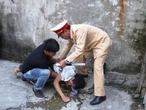 Khoảng 14h30 hôm nay, khi đang làm nhiệm vụ phân luồng, điều tiết giao thông ở đảo giao thông phía bắc cầu Chương Dương, thượng tá Lê Đức Đoàn và trung tá Phạm Văn Cương, Đội Cảnh sát giao thông số 1, nhận được tin báo có một cô gái đang đứng giữa cầu khóc lóc.