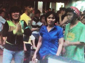 Bà Chiến và người nhà gây náo loạn trước trụ sở Công an TP Mỹ Tho. (Ảnh: Báo Ấp Bắc)