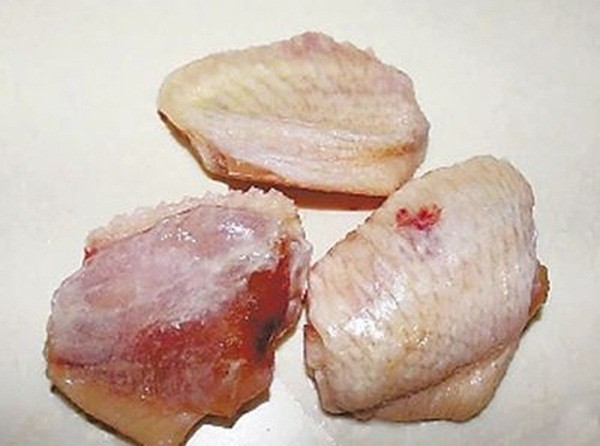 cánh gà giá rẻ khi luộc măi không chín, ninh cả tiếng không nhừ. Loại cánh gà này được đóng trong bao nilon giá 14 – 18 nhân dân tệ/kg (46.200 – 59.400 đồng - bán lẻ và bán cả túi).