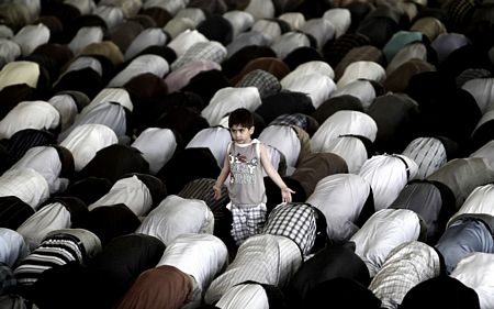 Một cậu bé Iran đứng cạnh trong buổi lễ cầu nguyện vào thứ 6