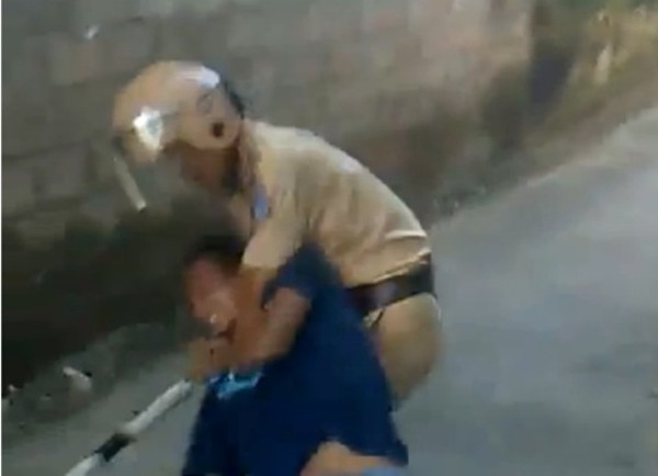dân bị cảnh sát bóp cổ giống y như trong phin