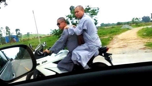 Giật mình thấy sư ''cưỡi'' môtô ''khủng''