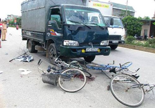 Chiếc xe tải kéo 8 chiếc xe đạp trên đường, trong đó có 5 xe bị cuốn vào gầm xe kéo theo khoảng 100m cùng với các em học sinh. Tại hiện trường, một em học sinh đã tử vong, 5 em đang trong tình trạng bị thương nặng. 8 chiếc xe đạp bị ô tô cuốn vào gầm đều bị hư hỏng nặng.