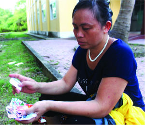 Chị Hà chua xót: “Đang thiếu tiền chạy chữa cho con, nên khi nghe nói trúng giải thưởng cao tui liều vay mượn của anh em, bạn bè mua thẻ cào điện thoại nộp cho họ”.
