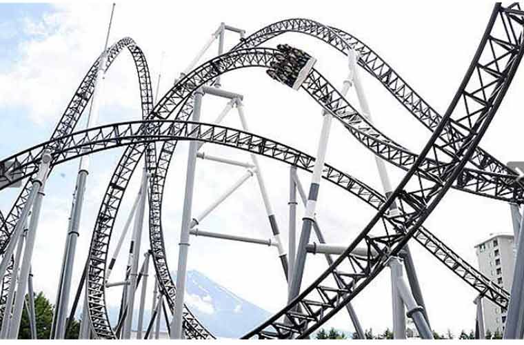 Roller-coaster siêu tốc Eejanaika tại công viên giải trí Fuji-Q Highland, Nhật Bản, mang đến cảm giác lộn ṿng 360 độ. Các hành khách dũng cảm của Eejanaika sẽ được trải qua 14 ṿng lộn nhào trên không trung.