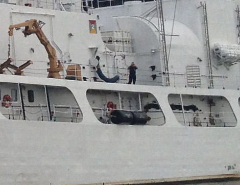 Container lạ xuất hiện ở thân tàu BRP Ramon Alcaraz được cho là chứa tên lửa.