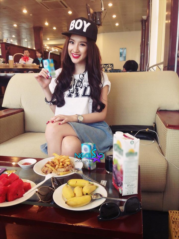 Angela Phương Trinh ăn hoa quả, tạo dáng cũng khiến người khác phải ngất ngây.