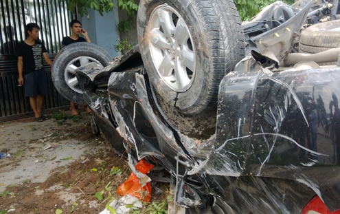 Ngay sau khi xảy ra vụ tại nạn, 3 người ngồi trên xe ô tô bị thương nhẹ rời khỏi hiện trường. Chiếc xe ô tô gây tai nạn hư hỏng nặng.