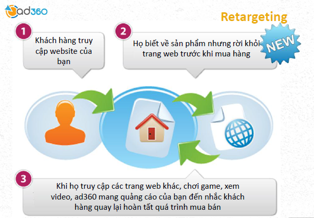 Retargeting- Đó chính là một công nghệ quảng cáo, giữ h́nh ảnh thương hiệu của doanh nghiệp “đeo bám” theo những khách hàng tiềm năng đă quan tâm truy cập website doanh nghiệp, nhưng rời đi mà chưa thực hiện hành vi mua hàng. Công nghệ retargeting sẽ mang đúng quảng cáo của doanh nghiệp đến đúng khách hàng, tại đúng thời điểm, để gợi nhớ, nhắc nhở họ quay lại mua hàng. (Xem mô tả)