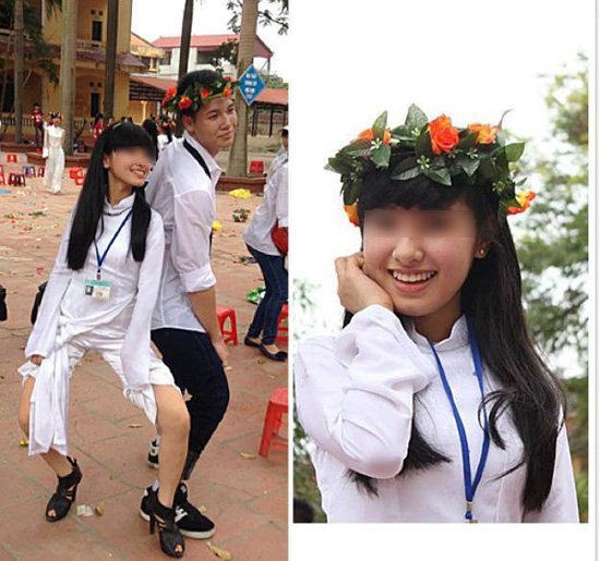 Bức ảnh nữ sinh xinh đẹp của một trường THPT ở Bắc Giang nghịch ngợm với tà áo dài gây xôn xao mạng.