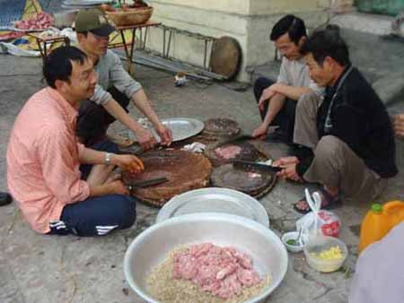 Tôi đã có dịp hiếm có, được tận mắt từ đầu đến đuôi, từ cảnh bác đồ tể cầm dao chọc tiết lợn, đến cảnh moi thịt sống ra băm, cho đến khi món thịt sống lên mâm cỗ và dựng tóc gáy với cảnh hàng trăm người, đủ cả già trẻ, lớn bé, nam thanh, nữ tú luôn tay gắp thịt sống cho vào miệng, nhai một cách ngon lành.