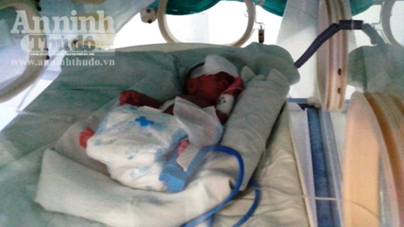 Trước đó ngày 11-5 bé Cường được chuyển từ Bệnh viện Phụ sản Thanh Hoá sang viện Nhi trong tình trạng bóp bóng qua nội khí quản, chân tay nhỏ xíu, da nhăn.