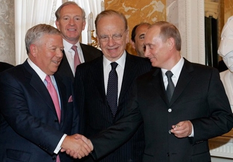 Robert Kraft (trái) bắt tay với Tổng thống Nga Vladimir Putin vào năm 2005. (Ảnh: AP)