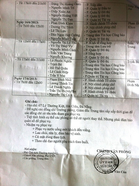 Nguồn tin riêng của Báo Lao Động cho biết, trong 5 ngày từ 13.6 đến 17.6.2013, Chánh Văn phòng UBND thành phố Đà Nẵng đã điều hơn 60 công chức thuộc các phòng, ban của UBND thành phố Đà Nẵng để phục vụ đám tang một cán bộ lãnh đạo hưu trí.
