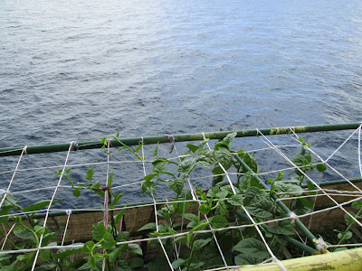 Trên nhà giàn DK 12 có một giàn rau mùng tơi xanh mướt, ngọn mập mạp vươn ra từ độ cao 22m so với mặt biển. Tôi tìm mãi không thấy dấu vết của hái hay cắt. Thì ra lính ta trồng rau để… ngắm thay hoa là chủ yếu, và lâu lâu có khách đất liền ra thì để các thủ trưởng… chụp ảnh. Nhưng lính nhà giàn còn có cá để ăn, vì họ ở một chỗ, thức ăn thừa bỏ xuống cá đến ăn thành thói quen, lúc cần ăn cá nghiền lương khô ra rắc xuống, cá đến, chọn con nào thích thì thả câu sát nó. Và vì thế, trong mấy cái gầm trống của nhà giàn, tôi thấy có trồng nghệ, đinh lăng… những thứ hợp với cá, để khỏi ngán, chứ ngày nào cũng cá biển luộc thì cũng như ta rền rĩ cả tháng mì tôm thôi…
