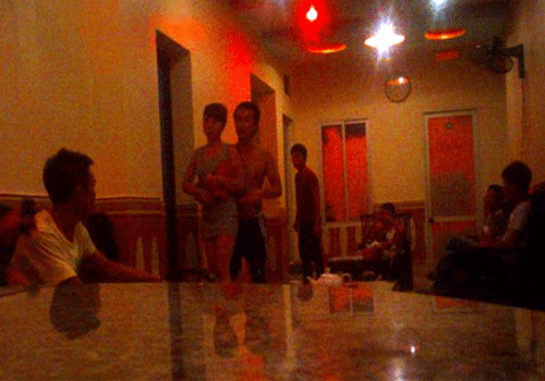 Vừa mơ màng theo bài hát, Q. vừa vùi mặt khách nữ vào ngực ḿnh. Q. chủ độ trao đổi số điện thoại của ḿnh. “Nếu chị thích, em có thể lên lầu phục vụ chị. Nếu chị ngại th́ cứ gọi em khi có nhu cầu! Chị em gặp nhau và em có thể đi ra ngoài với chị!” - Q. th́ thầm, mơn trớn.