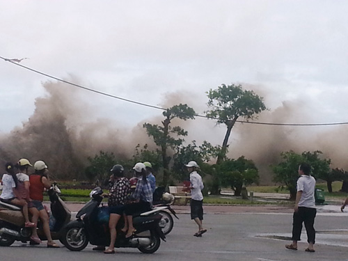 Sóng đánh tràn bờ tại khu 2, Đồ Sơn, ngay trước mặt một gia đình đang "hồn nhiên" chụp ảnh