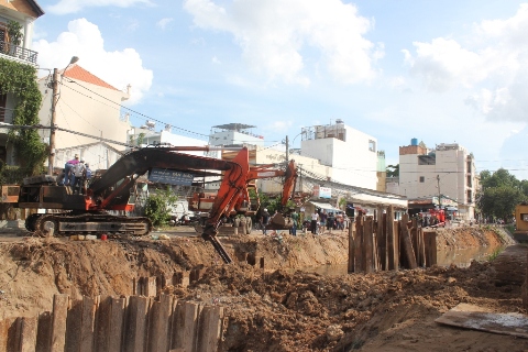 Được biết, dự án trên nằm trong công trình thoát nước đường Phạm Huy Thông do công ty TNHH Thương mại – Dịch vụ - Xây dựng Hữu Phước thi công.