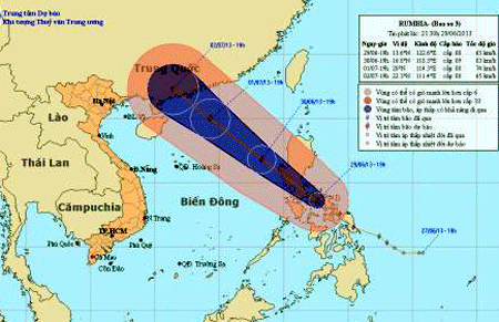 Dự báo trong 24 giờ tới, bão di chuyển chủ yếu theo hướng Tây Bắc, mỗi giờ đi được khoảng 20km và còn có khả năng mạnh thêm. Đến 7 giờ ngày 30/06, vị trí tâm bão ở vào khoảng 14,8 độ Vĩ Bắc; 121,4 độ Kinh Đông, trên khu vực phía Nam đảo Lu Dông (Philippin). Sức gió mạnh nhất vùng gần tâm bão mạnh cấp 8, cấp 9 (tức là từ 62 đến 88 km một giờ), giật cấp 10, cấp 11.