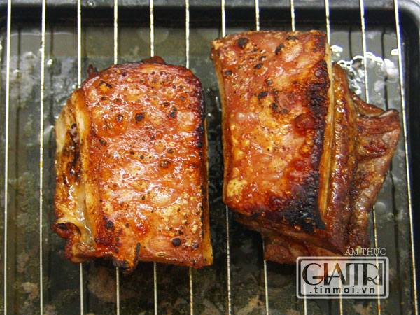 - Khi nướng không cần lật mặt thịt, phần bì nổ hết là thịt chín.