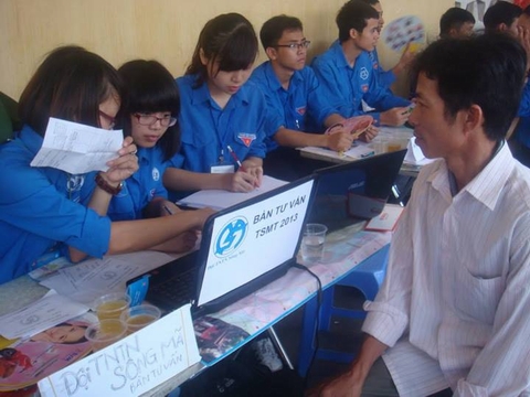 Đội hình tìm kiếm nhà trọ miễn phí, giá rẻ của Thành đoàn Hà Nội đã phối hợp với các sinh viên tình nguyện luôn sẵn sàng giúp đỡ thí sinh và phụ huynh.
