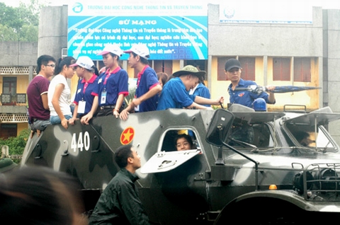Quân đội hỗ trợ sĩ tử đến trường thi.