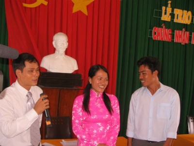 Anh Nguyễn Văn Đức (sinh năm 1977), quê gốc Giao Thạnh, Thạnh Phú, Bến Tre, lấy vợ là chị Nguyễn Thị Thanh Tuyền, ngụ Bến Lức có mặt trong buổi lễ vui vẻ thốt lên: “Chính quyền quê vợ dễ thương thật!”.