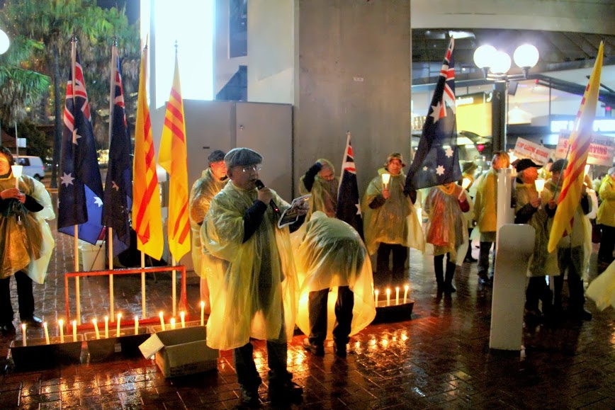 Sau nghi lễ chào cờ Úc Việt là phần phát biểu bằng Anh ngữ của ban tổ chức và các bạn trẻ về lý do của cuộc biểu tình này. Truyền đơn bằng tiếng Anh cũng đã được phân phát để cho người Úc hiểu thêm về tình trạng vi phạm nhân quyền của csVN. Không khí đã được hâm nóng lên với các tham dự viên mặc áo mưa màu vàng và đồng loạt thắp nến. Lửa đấu tranh chống văn hóa vận tại Úc đã lại được tiếp tục thắp lên tại Sydney. Cuộc biểu tình đã chấm dứt lúc 9g tối cùng ngày.