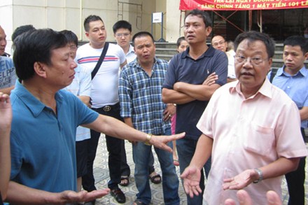 GĐ Cty CP XD số 5 Hà Nội – Cao Tiến Đạt khẳng định: "Đây là tài sản của tôi nên tôi có quyền sử dụng".[h=2]Hà Nội:[/h] 8 giờ sáng nay , đại diện gần 100 hộ dân trú tại chung cư 101 Láng Hạ, Đống Đa, Hà Nội đă căng biểu ngữ phản đối việc chủ đầu tư là Cty CP xây dựng số 5 Hà Nội bịt lối đi chính của toà nhà, khiến hơn một tháng nay họ phải đi lại qua cửa lách thoát hiểm rất khó khăn và bất tiện.