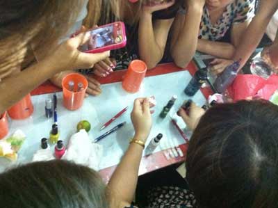 Cảnh dạy vẽ móng trong một trung tâm dạy nghề tại Hà Nội. (Hình: Nguyên Lê/Người Việt)