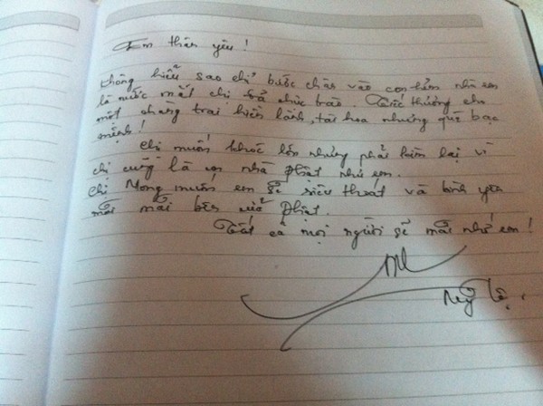 Trong sổ tang, hàng loạt sao đã để lại những lời thương tiếc không nguôi với một người ca sĩ trẻ hiền hậu.