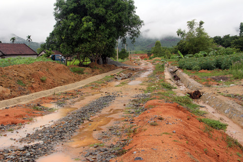 Không chỉ có thế, phần mương đương th́ công bằng đá hộc 25 cm cũng bị hổng rất nhiều, nên khi mưa xuống rất dễ dẫn tới sụt lún.