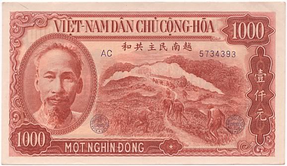 Lần 3: V́ tiền NHQG đầu tiên được in ra năm 1951 là để đổi đồng Tài chính trước đó nên hầu hết những người có tiền đổi là thuộc khu vực công chức hưởng lương từ ngân sách Nhà nước. Đến tháng 2/1959, Chính phủ quyết định phân phối lại thu nhập và đă đổi tiền lần thứ 3 với tỷ lệ 1 đồng NHQG mới ăn 1.000 đồng NHQG cũ. Cuộc đổi tiền năm 1959 được đánh giá là "ngoạn mục" nhất trong lịch sử tiền tệ Việt Nam. Đến tháng 10/1961, đồng tiền NHQG VN ở miền Bắc được đổi tên thành đồng tiền Ngân hàng Nhà nước Việt Nam (NHNN) với cùng một mệnh giá để tránh trùng tên với đồng tiền NHQG ở miền Nam của chính phủ Nguỵ quyền Sài G̣n.