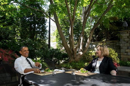 Khác với bữa trưa với ông Obama vốn chủ yếu mang tính cá nhân hơn là chính trị, bữa sáng hôm 30.7 gây nhiều ṭ ṃ bởi hai nhân vật tham dự đều là ứng cử viên tiềm năng của đảng Dân chủ trong cuộc bầu cử tổng thống năm 2016.