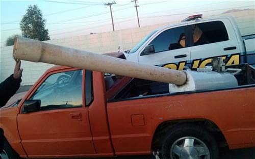 Hồi tháng 2 vừa rồi, cảnh sát ở Mexicali (Mexico), thị trấn giáp ranh giữa Mexico và California (Mỹ) thu giữ pháo tự chế của các tay buôn ma túy. Chúng dùng pháo này để bắn ma túy từ Mexico sang Mỹ.