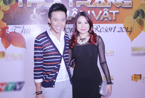 Cô và Trấn Thành cùng đến chúc mừng nhà thiết kế Tuấn Trần ra mắt bộ sưu tập mới.
