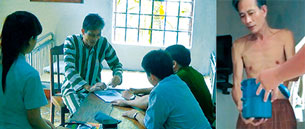 Tấm hình trên báo cand online với lời chú thích: Nguyễn Văn Hải trong buổi khám sức khỏe định kỳ (ngày 26/7) và nhận khẩu phần ăn từ cán bộ trại (ngày 28/7). Photo courtesy of cand online