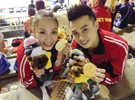 Với những động tác tự tin, đẹp mắt, Thu Hà-Bá Đông đă chinh phục được những trọng tài khó tính nhất, nhận số điểm cao nhất để giành HCV.