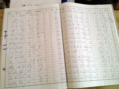 Sổ lưu kết quả xét nghiệm thể hiện sự trùng lặp của một số xét nghiệm - Ảnh: Thúy Anh