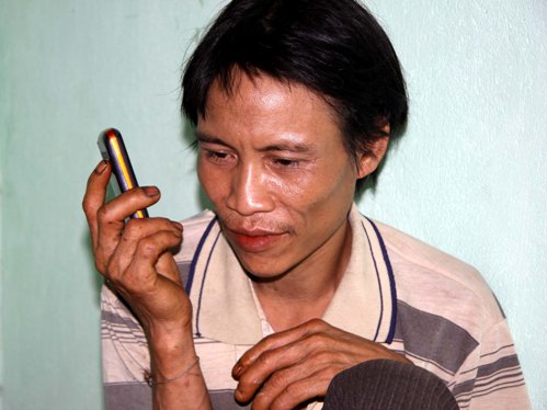 “Người rừng” Hồ Văn Lang thích thú bên chiếc điện thoại